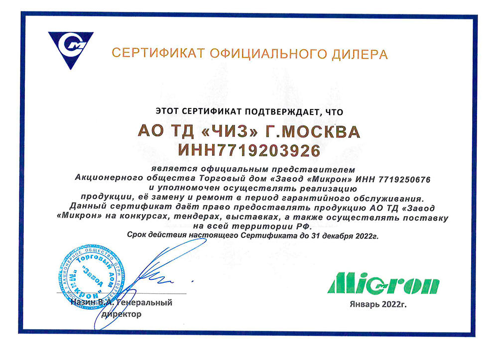 Сертификаты официального дилера