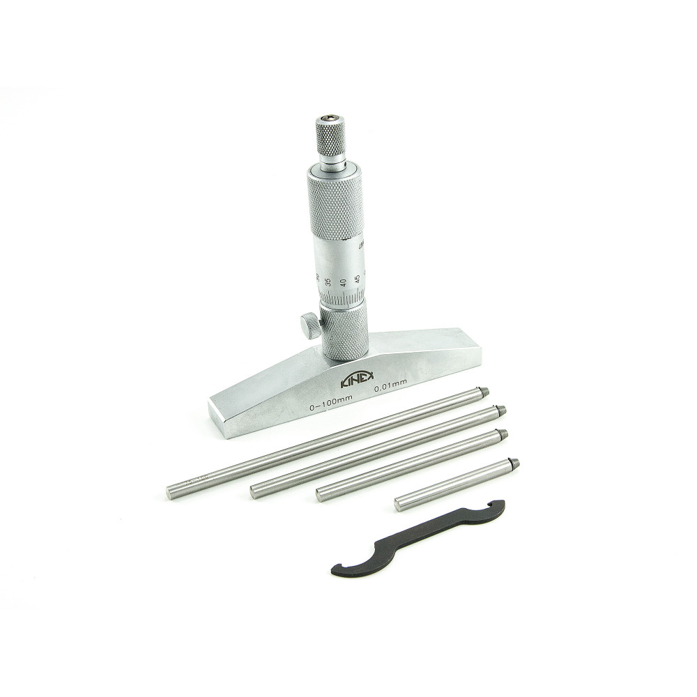 Имеет верхний предел измерения 100 мм, с ценой деления 0.01 мм. Производство бренда Kinex.