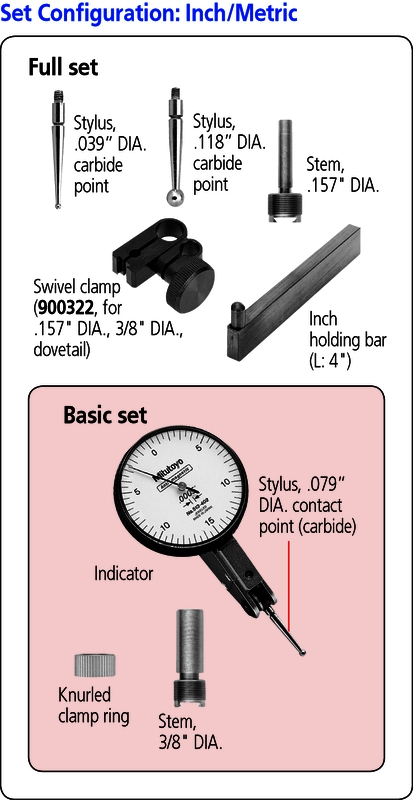 Индикатор ИРБ-0,7/0,03" 0,01/0,0005" щуп 19,9 шкала +/-10(38) базовый набор 513-406 Mitutoyo