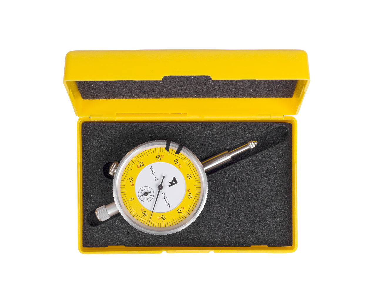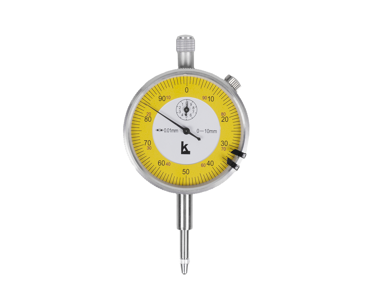 Шкала индикатора имеет цену деления 0.01 мм, Диапазон измерений 0- 10 мм, класс точности 0. Без крепежного ушка. Производство компании Калиброн.