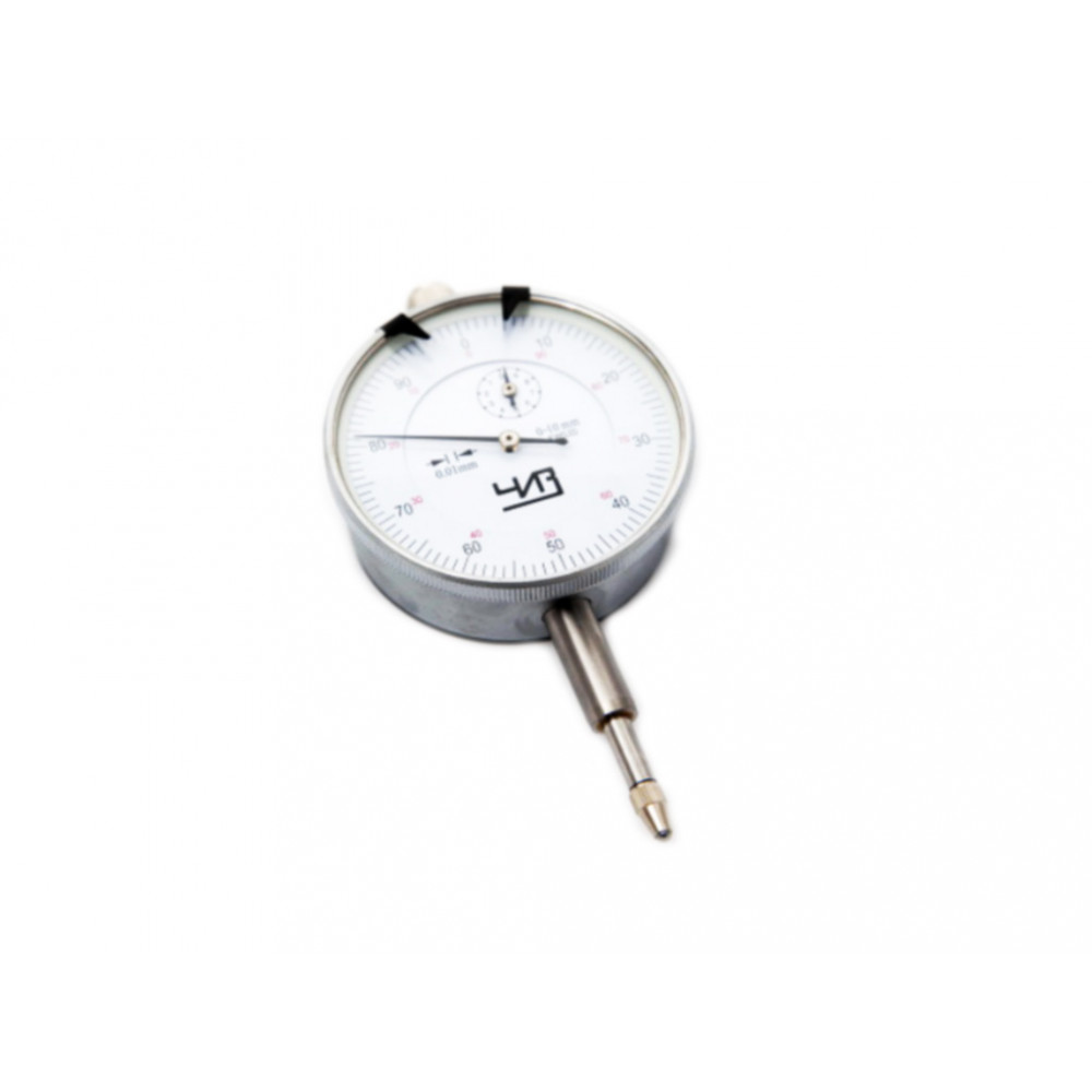 Шкала индикатора имеет цену деления 0.01 мм, Диапазон измерений 0- 10 мм. Есть крепежное ушко. Производство компании ЧИЗ.
