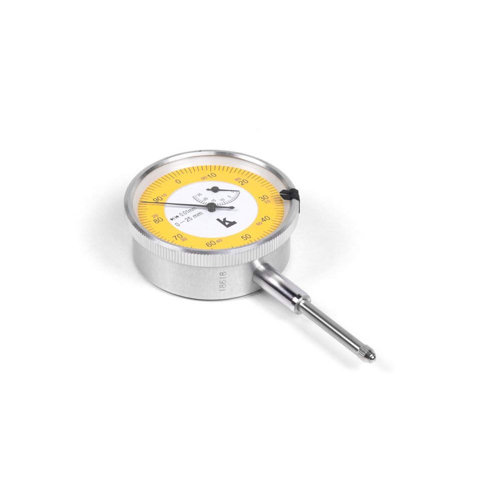 Шкала индикатора имеет цену деления 0.01 мм, Диапазон измерений 0- 25 мм. Без крепежного ушка. Производство компании Калиброн.