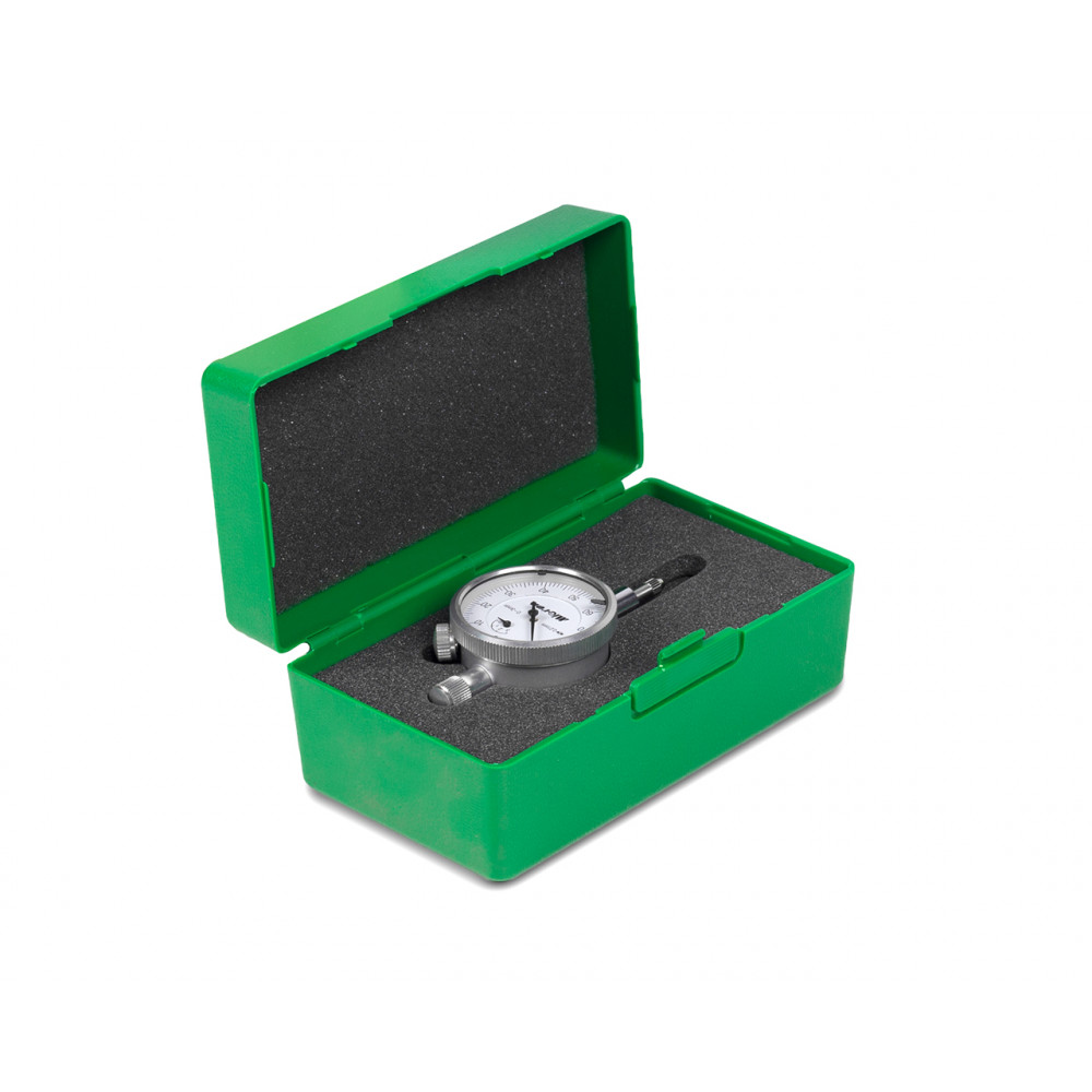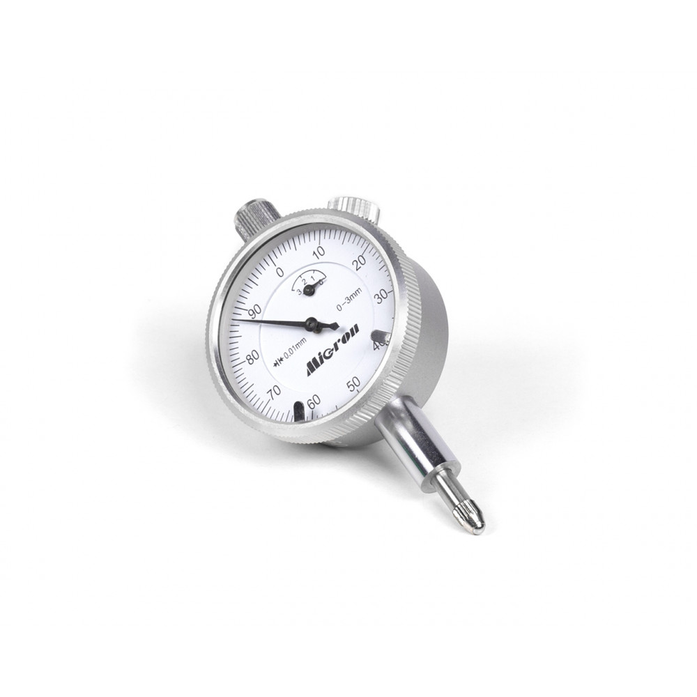 Шкала индикатора имеет цену деления 0.01 мм, Диапазон измерений 0- 3 мм. Есть крепежное ушко. Производство компании Micron.