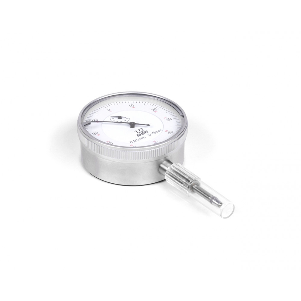 Шкала индикатора имеет цену деления 0.01 мм, Диапазон измерений 0- 5 мм. Без крепежного ушка. Производство компании SHAN.