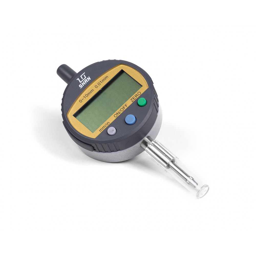 Шкала индикатора имеет цену деления 0.01 мм и верхний предел измерений 0- 10 мм. Производство компании SHAN.