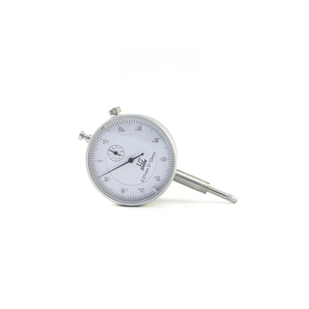 Шкала индикатора имеет цену деления 0.01 мм, Диапазон измерений 0- 2 мм. Есть крепежное ушко. Производство компании SHAN.