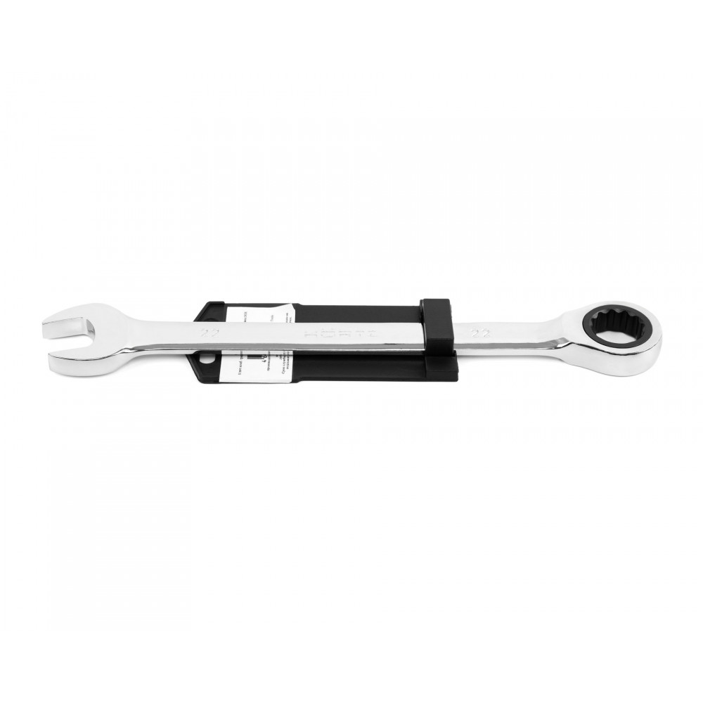 Ключ комбинированный трещоточный 22х22 хромированный на подвесе HORTZ