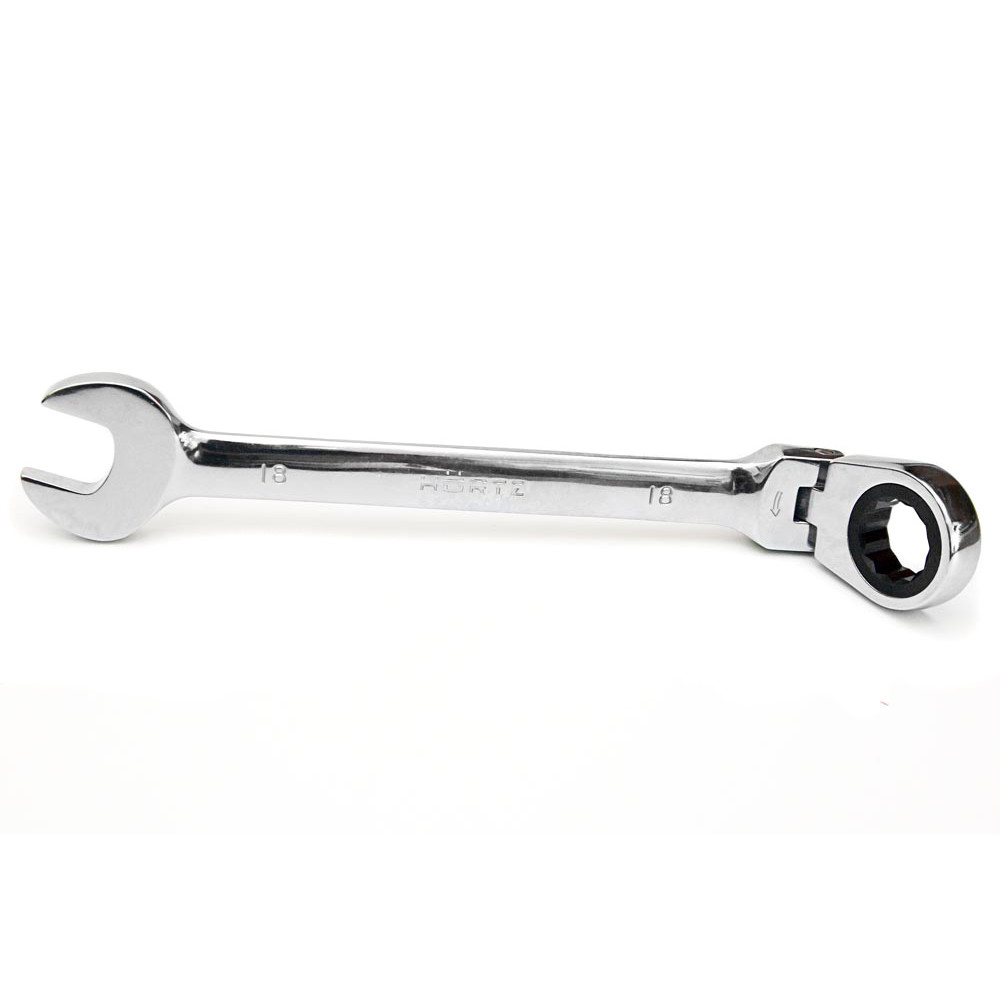 Ключ комбинированный трещоточный шарнирный 18х18 хромированный HOR