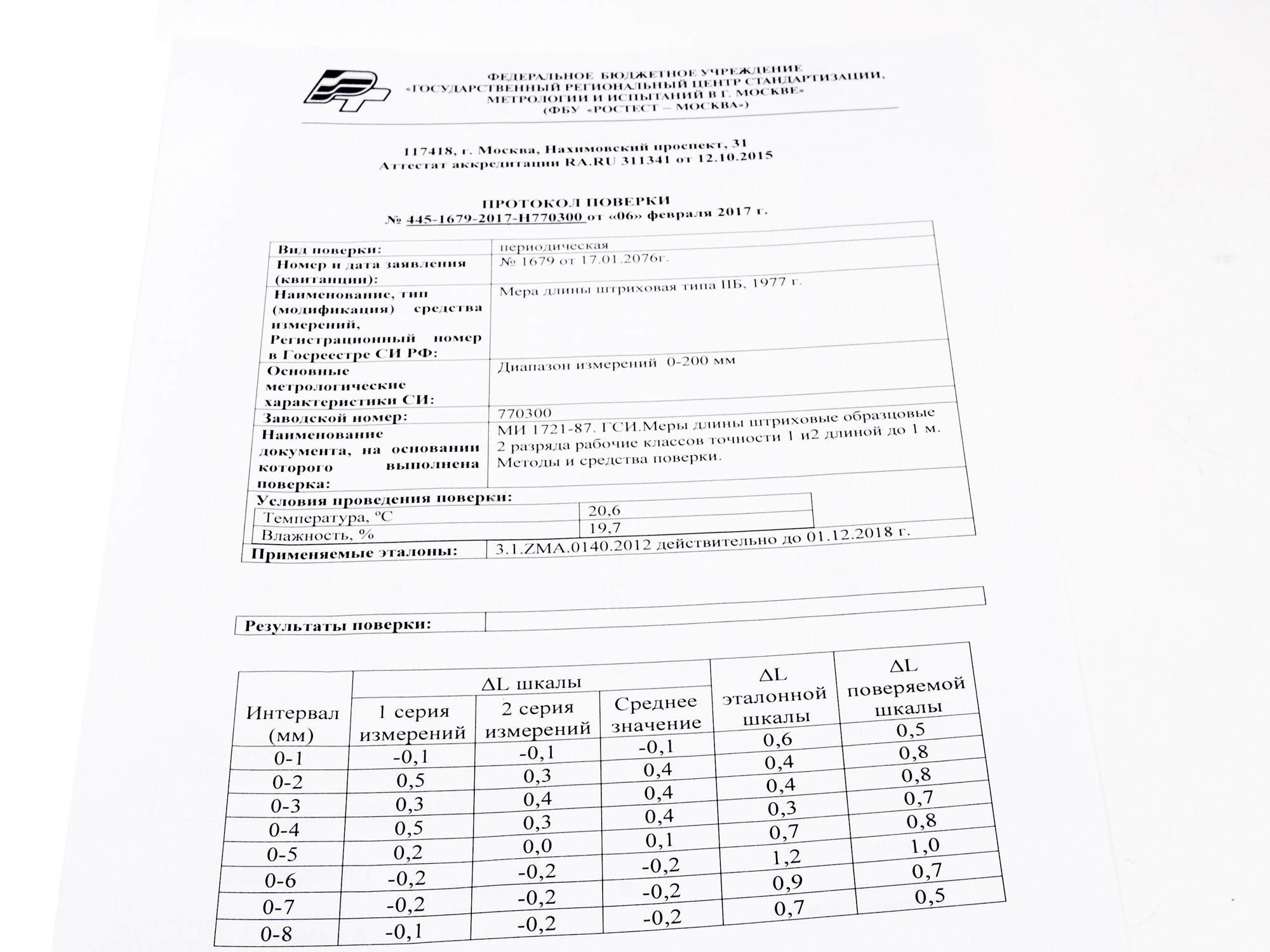 Мера длины штриховая брусковая тип IIБ 200мм (2 разряд)