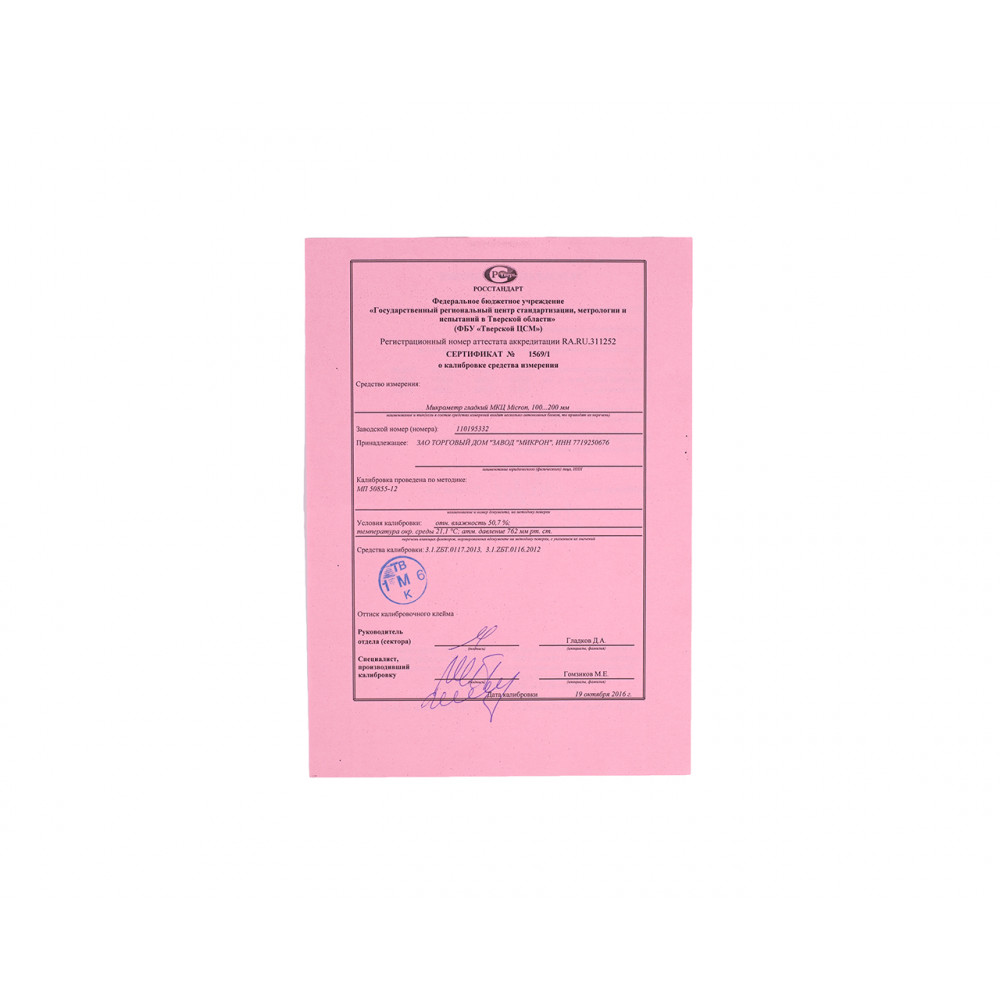 | Цена деления. мм 0.001 |
