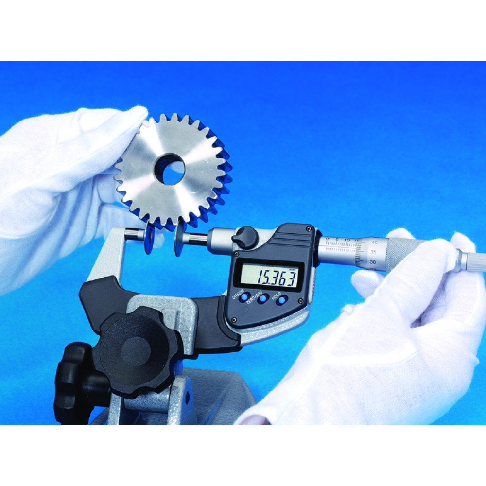 Шкала инструмента имеет цену деления 0.001 мм и верхний предел измерений 75 мм. Производство компании MITUTOYO.
