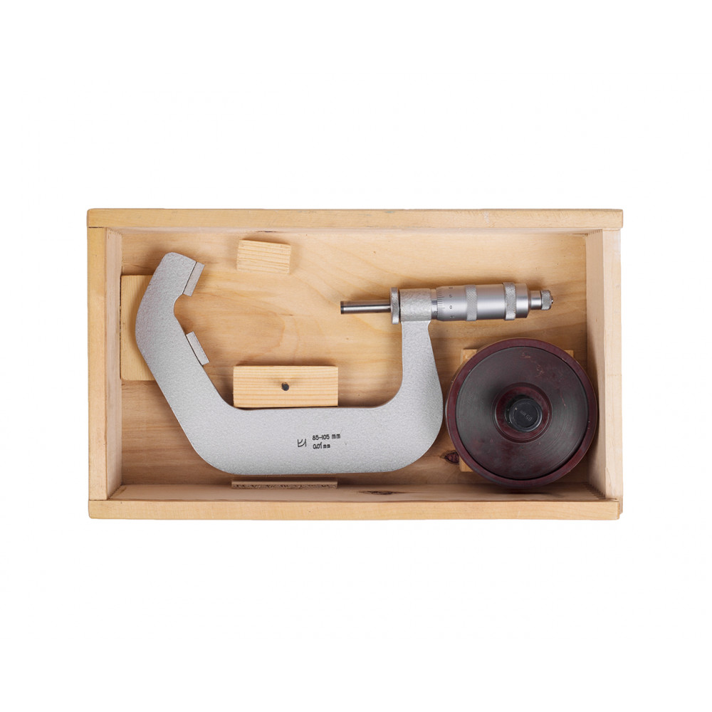 Шкала инструмента имеет цену деления 0.01 мм и верхний предел измерений 105 мм.