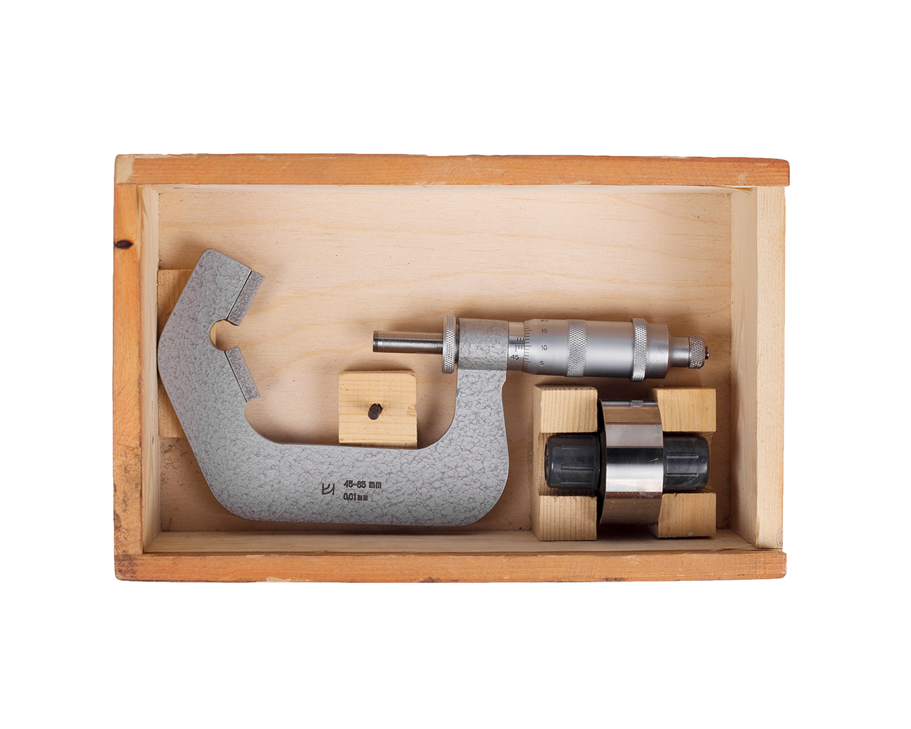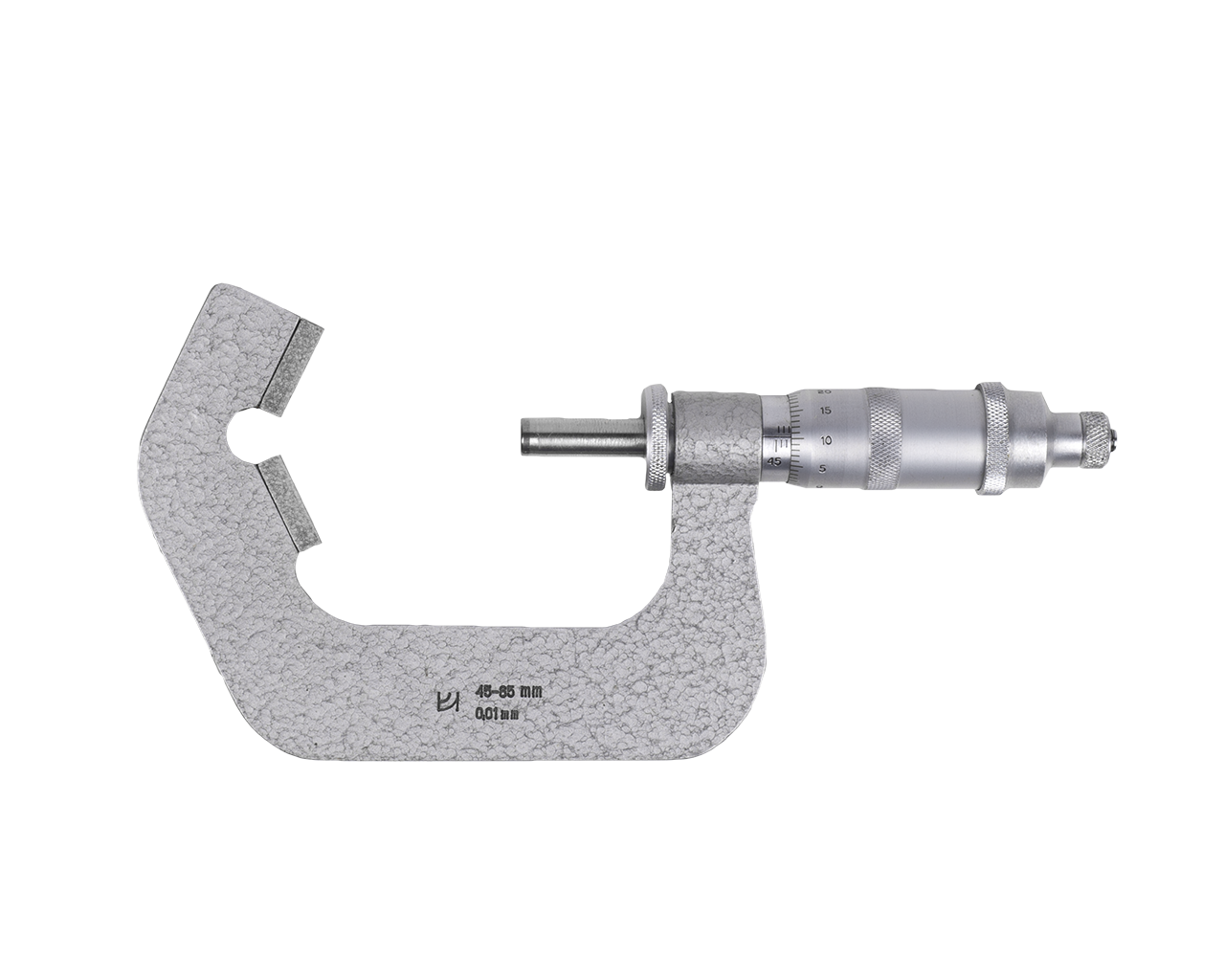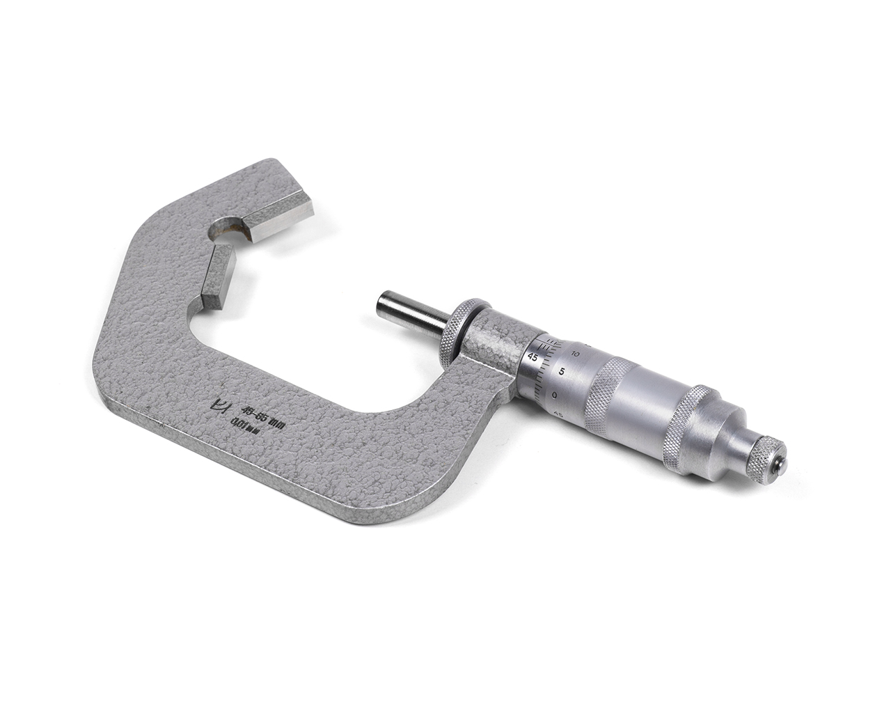 Шкала инструмента имеет цену деления 0.01 мм и верхний предел измерений 65 мм.