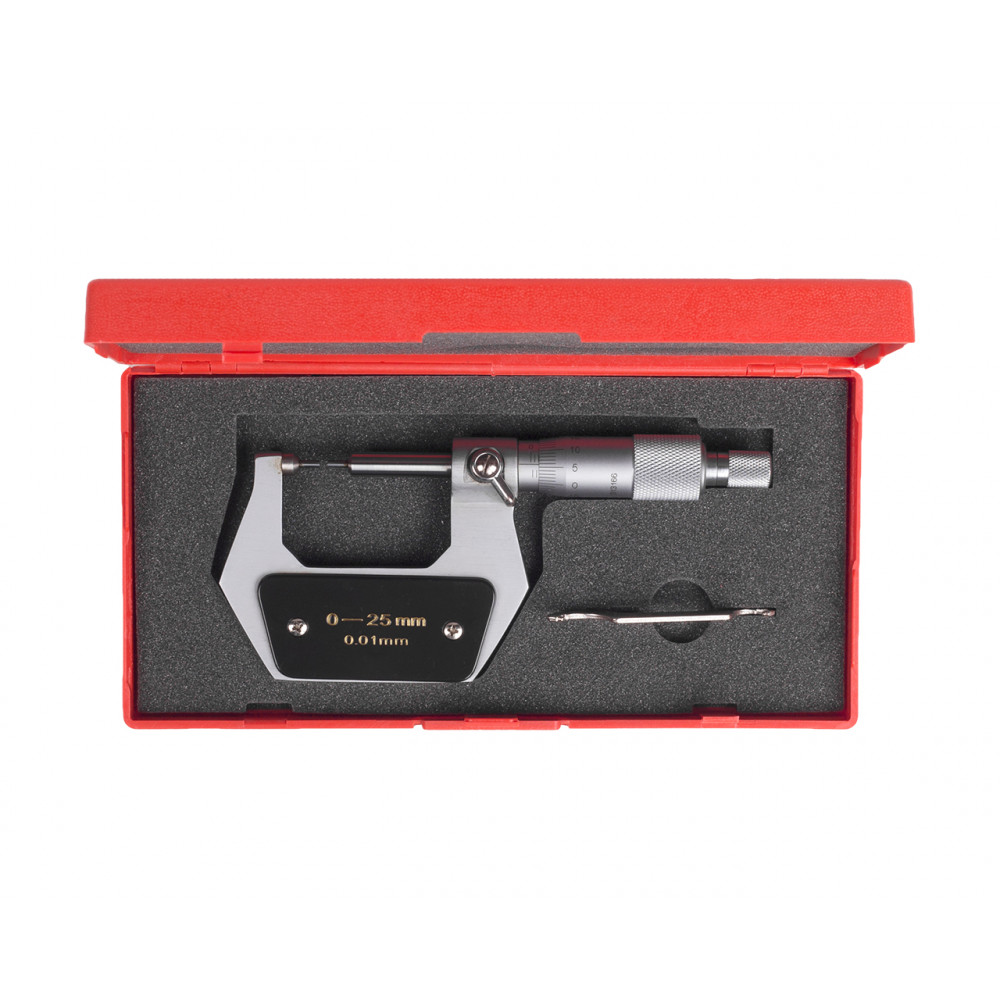 Цена деления 0.01 мм и верхний предел измерений 25 мм.