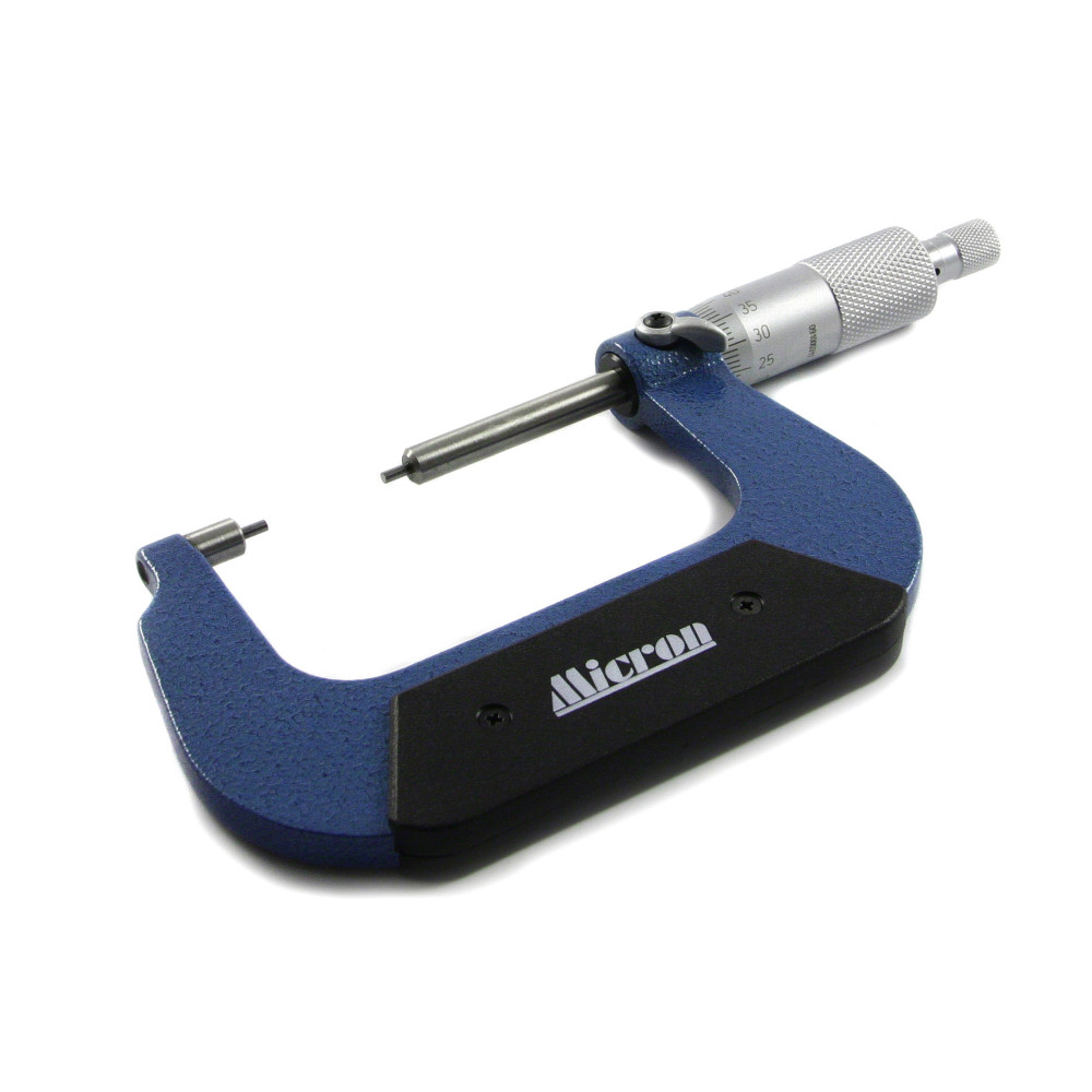 Микрометр произведен из качественной стали, наконечники прибора выполнены из твердосплавных материалов и тщательно отшлифовны. Изолирующая накладка исключает влияния тепла от рук на показания прибора.