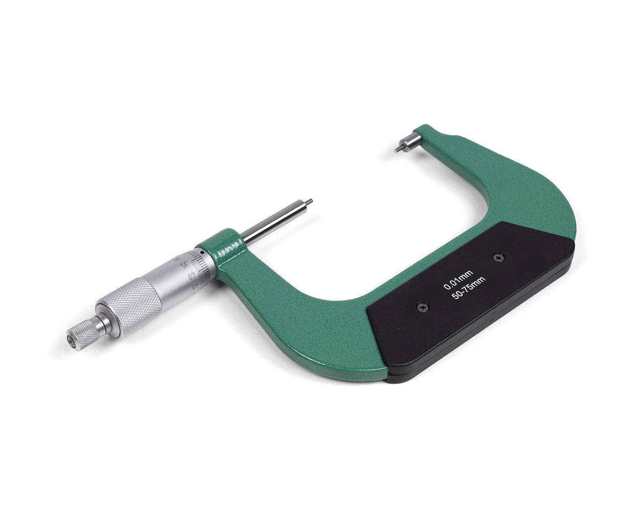 Цена деления 0.01 мм и верхний предел измерений 75 мм.