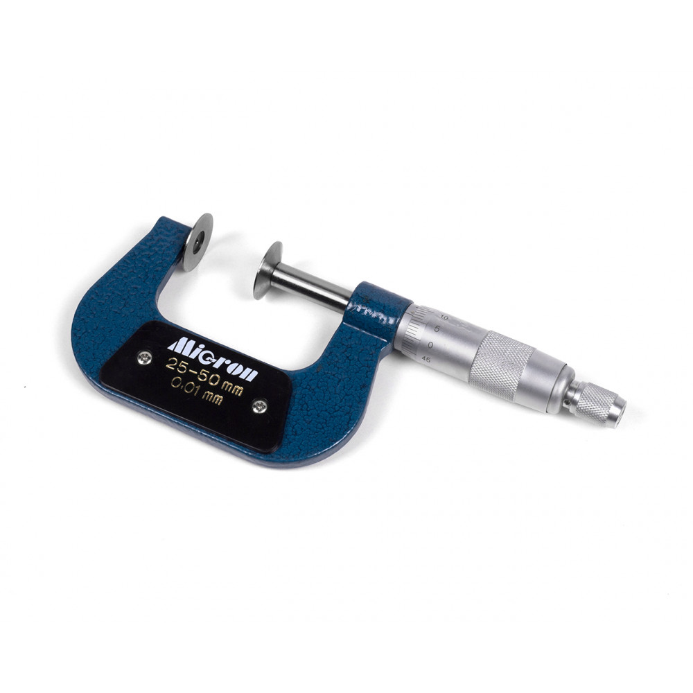 Данный микрометр с верхним пределом измерений 50 мм, ценой деления шкалы барабана 0.01 мм, бренда Micron.