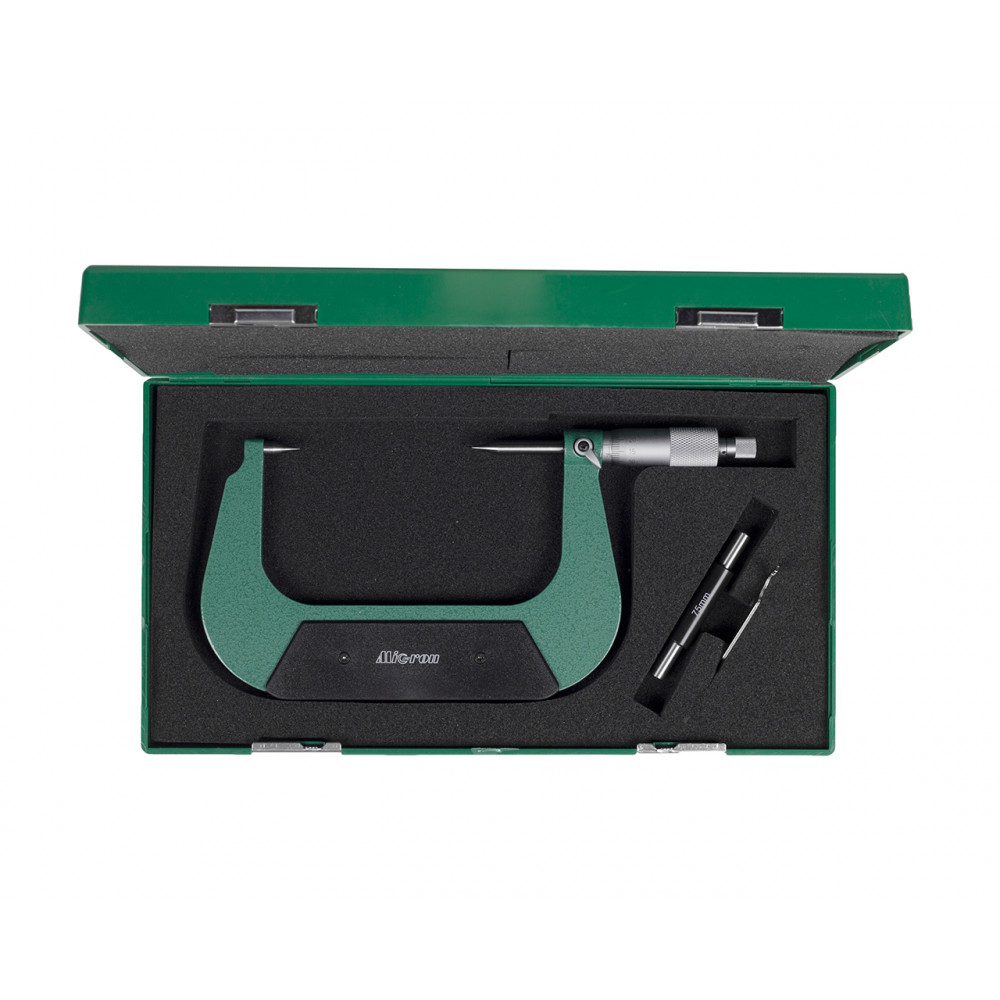 Показания снимаются со шкалы стебля, где указаны целые значения, и барабана с нониусом, где указаны доли миллиметра. Микрометр имеет высокую точность измерения и выполнен из качественных материалов. Прибор оснащен теплоизоляционными вставками, измерительные поверхности выполнены из твердого сплава, что значительно продлевают его срок службы. Инструмент упакован в пластиковый или деревянный бокс для удобства хранения и транспортировки.