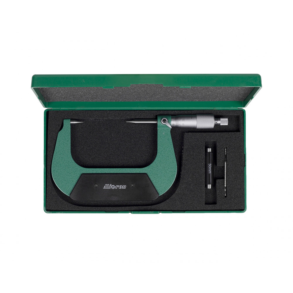 Показания снимаются со шкалы стебля, где указаны целые значения, и барабана с нониусом, где указаны доли миллиметра. Микрометр имеет высокую точность измерения и выполнен из качественных материалов. Прибор оснащен теплоизоляционными вставками, измерительные поверхности выполнены из твердого сплава, что значительно продлевают его срок службы. Инструмент упакован в пластиковый или деревянный бокс для удобства хранения и транспортировки.