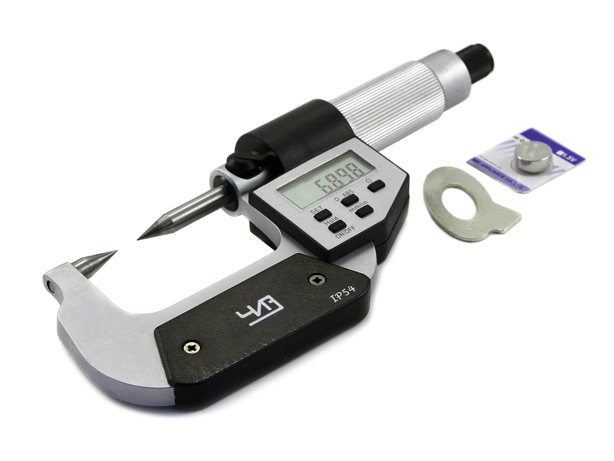 Электронная версия имеет цифровое отсчетное устройство, благодаря которому показания считываются быстрее и проще. Так же можно быстро переключится на метрическую или дюймовую систему исчисления, установить на нуль, поставить пределы допуска и другие удобные функции. По сравнению с механическим точечным микрометром, цифровой обладает большей точностью: до тысячных долей миллиметра. Микрометр имеет высокую точность измерения и выполнен из качественных материалов. Прибор оснащен теплоизоляционными вставками, измерительные поверхности выполнены из твердого сплава, что значительно продлевают его срок службы. Инструмент упакован в пластиковый или деревянный бокс для удобства хранения и транспортировки.