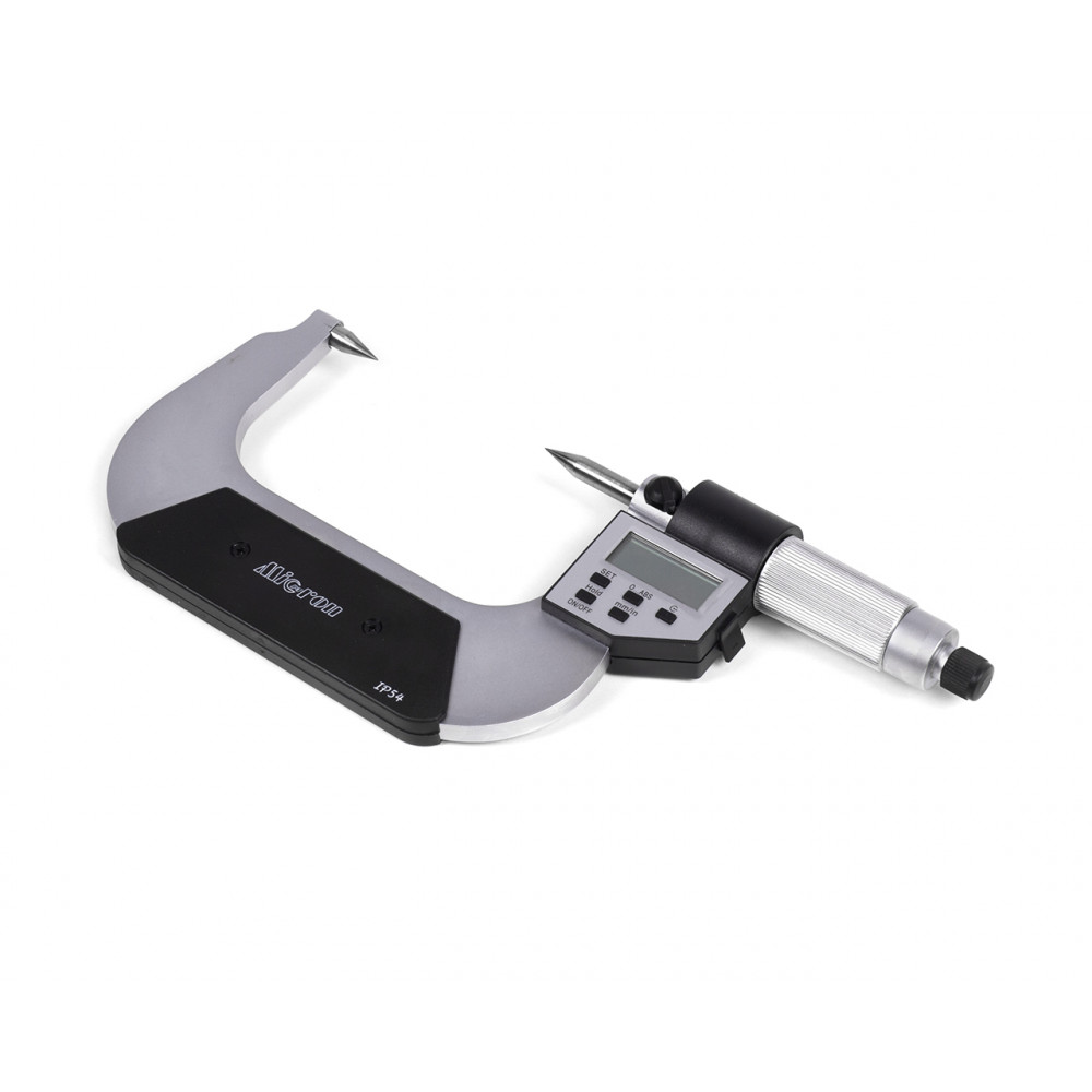 Электронная версия имеет цифровое отсчетное устройство, благодаря которому показания считываются быстрее и проще. Так же можно быстро переключится на метрическую или дюймовую систему исчисления, установить на нуль, поставить пределы допуска и другие удобные функции. По сравнению с механическим точечным микрометром, цифровой обладает большей точностью: до тысячных долей миллиметра. Микрометр имеет высокую точность измерения и выполнен из качественных материалов. Прибор оснащен теплоизоляционными вставками, измерительные поверхности выполнены из твердого сплава, что значительно продлевают его срок службы. Инструмент упакован в пластиковый или деревянный бокс для удобства хранения и транспортировки.