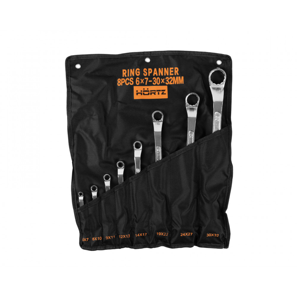 Набор ключей накидных двусторонних 12 шт. (8-32) хромированных HORTZ