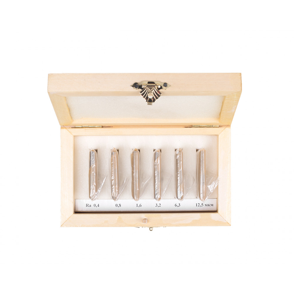 Комплектация набора: 6 пластин со средним арифметическим отклонением профиля (Ra) 12,5; 6,3; 3,2; 1,6; 0,8; 0,4 мкм.