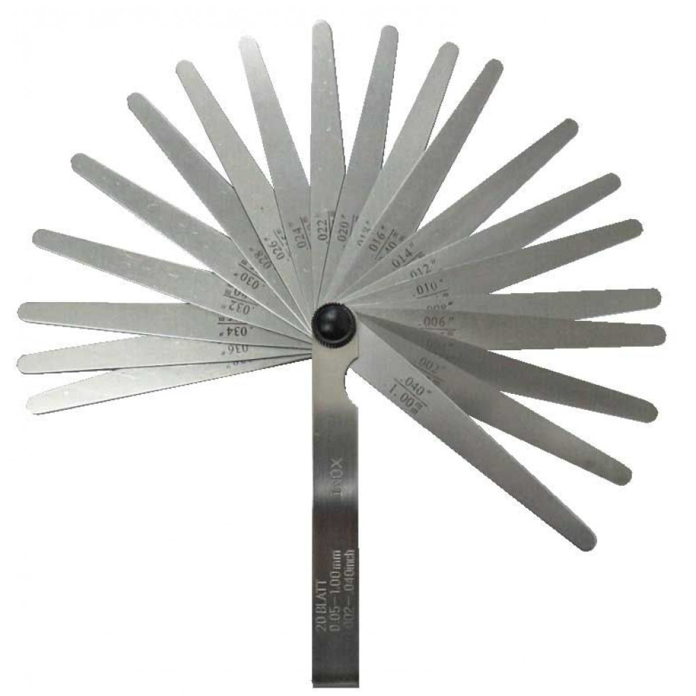 В наборе 20 щупов в диапазоне 0,05-1 мм.