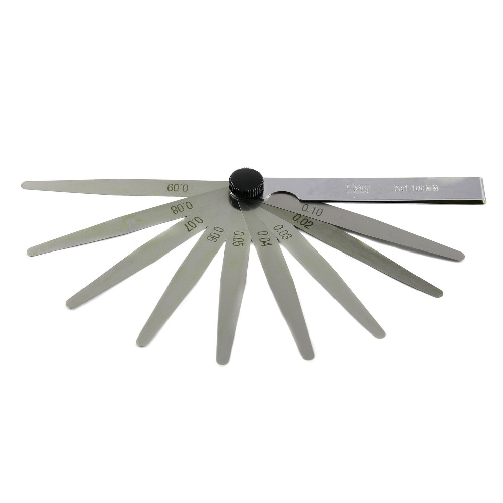 В наборе №1 9 щупов в диапазоне 0,02-0,10 мм: 0,02; 0,03; 0,04; 0,05; 0,06; 0,07; 0,08; 0,09; 0,10