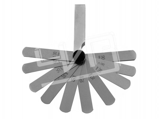 В наборе №4 11 щупов в диапазоне 0,1-1 мм: 0,10 (2 шт); 0,20; 0,30; 0,40; 0,50; 0,60; 0,70; 0,80; 0,90; 1,0.