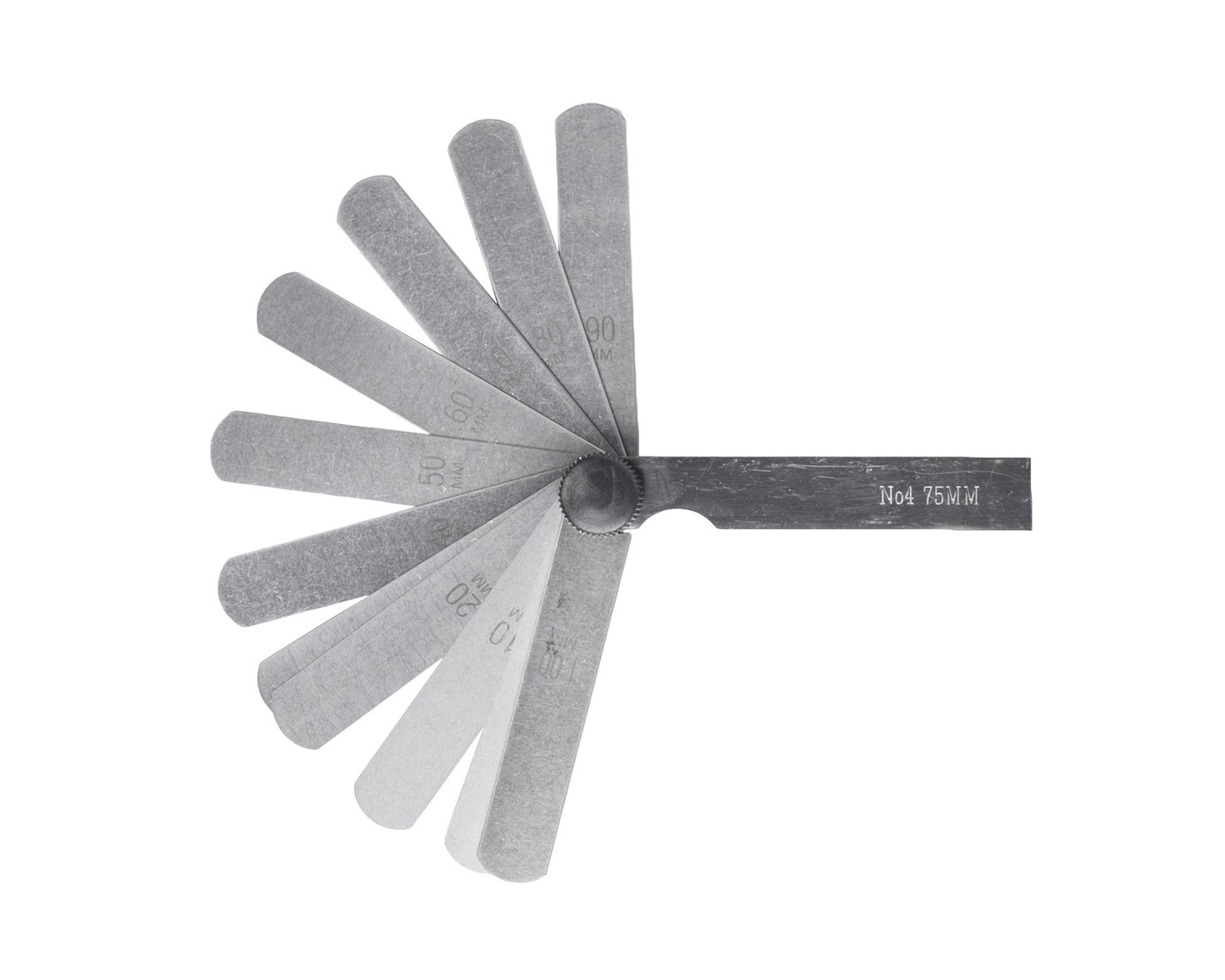 В наборе №4 11 щупов в диапазоне 0,1-1 мм: 0,10 (2 шт); 0,20; 0,30; 0,40; 0,50; 0,60; 0,70; 0,80; 0,90; 1,0.