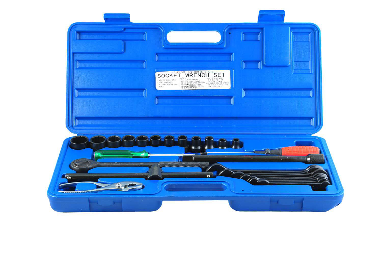 7. Головки торцевые сменные 1/2: 8, 9, 10, 11, 12, 13, 14, 15, 17, 19, 22, 24 мм;