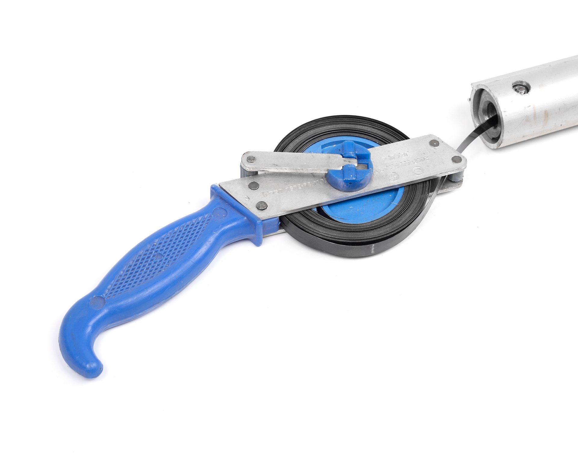 Рулетка 10м Р10УЗГ с лотом с пов. - инструмент, применяемый для измерения уровня нефтепродуктов в резервуарах. Представляет собой ленту из углеродистой стали с миллиметровой разметкой, для сматывания ленты используется специальная рукоятка. На конце измерительной ленты зафиксирован лот, работающий в виде груза, от нижнего края которого начинается разметка рулетки. Лот оснащен искробезопасным наконечником. В процессе измерений плавно опускают лот в резервуар с нефтепродуктами, не допуская ударов и резких движений.