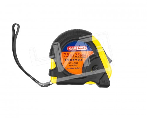 Рулетка 7.5м обрез. KAM-tools - инструмент применяемый для измерения длины. Рулеткой можно измерить практически ничем не ограниченное расстояние, откладывая необходимую длину и делая отметки.