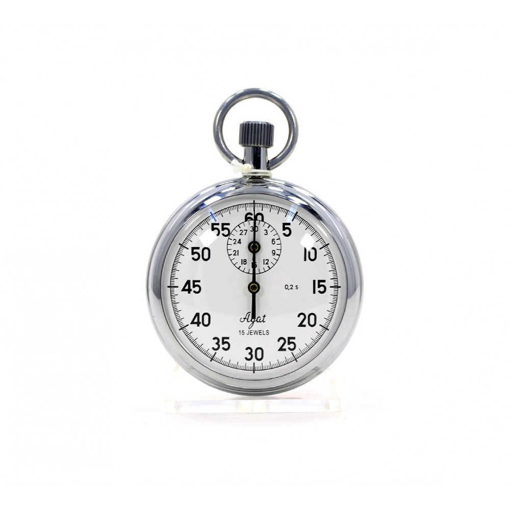 Секундомер имеет циферблат с 60-секундной шкалой с ценой деления 0,2 с и дополнительный 30- минутный циферблат, с ценой деления 1 мин. Механизм калибра 42 мм, на 15 рубиновых камнях, имеет пружинный двигатель, анкерный ход и колебательную систему баланс - спираль с периодом колебаний 0,4 с.