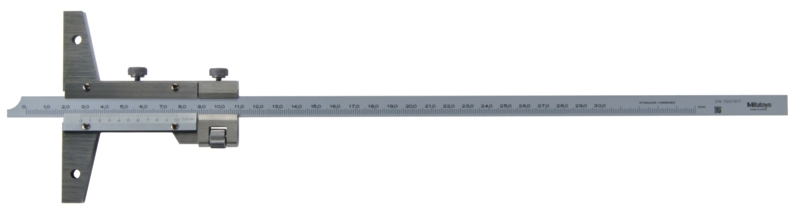 Шкала инструмента имеет предел измерений 300 мм, цену деления 0.02 мм. Производство компании MITUTOYO.
