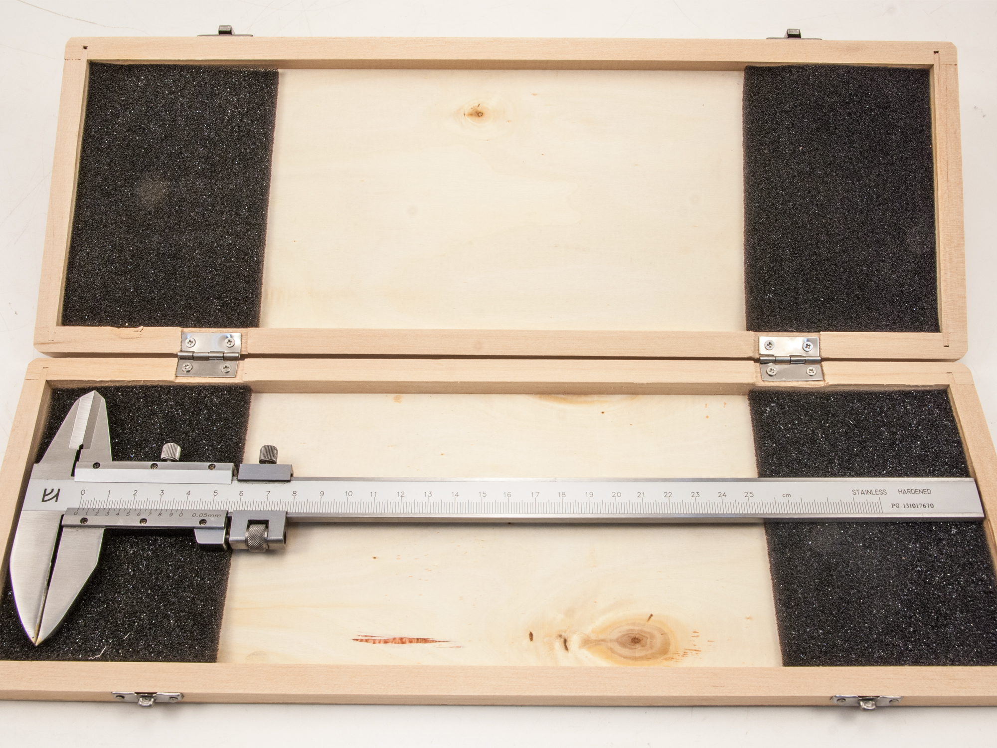 Результаты измерений снимаются по шкале со штанги, которая показывает целые миллиметры и с нониуса, показывающего их доли. Прибор поставляется в специальном жестком кейсе.