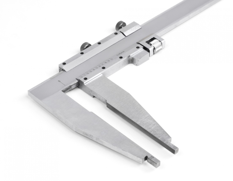 Прибор состоит из вертикальной штанги с основной шкалой и нониуса – вспомогательной шкалы для отсчета долей миллиметра. Снятие показаний происходит путем сложения значений полученных с обоих шкал.