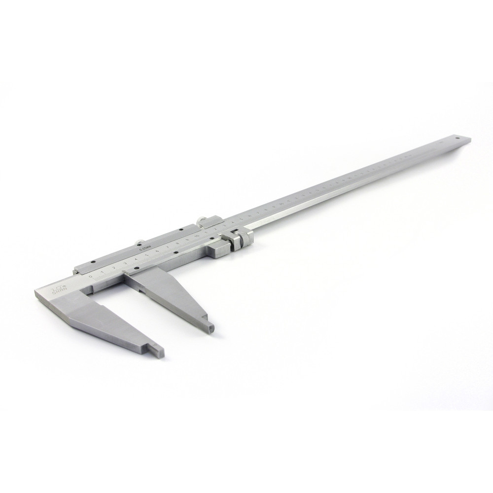 Прибор состоит из вертикальной штанги с основной шкалой и нониуса – вспомогательной шкалы для отсчета долей миллиметра. Снятие показаний происходит путем сложения значений полученных с обоих шкал.