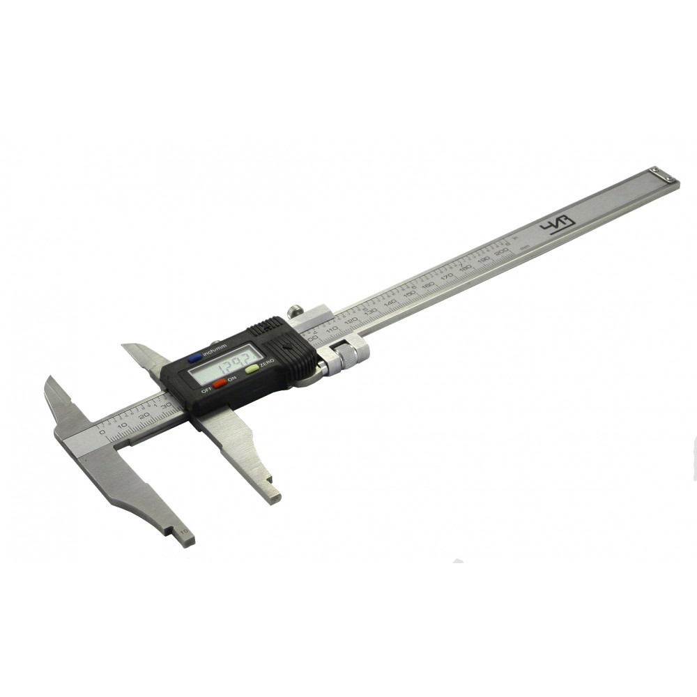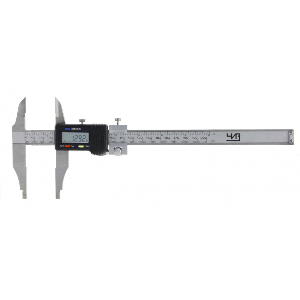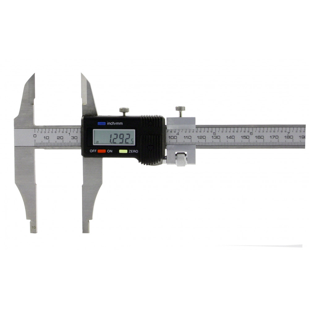Прибор имеет штангу со шкалой, но в отличие от механического типа функцию нониуса здесь выполняет цифровой блок. Удобство электронного ШЦ в том, что показания выводятся сразу на дисплей – нет необходимости тратить время на подсчет значений по делениям шкал. Также здесь можно быстро выставить прибор на «нуль» в любом месте шкалы, производить вычисления в миллиметрах и в дюймах.