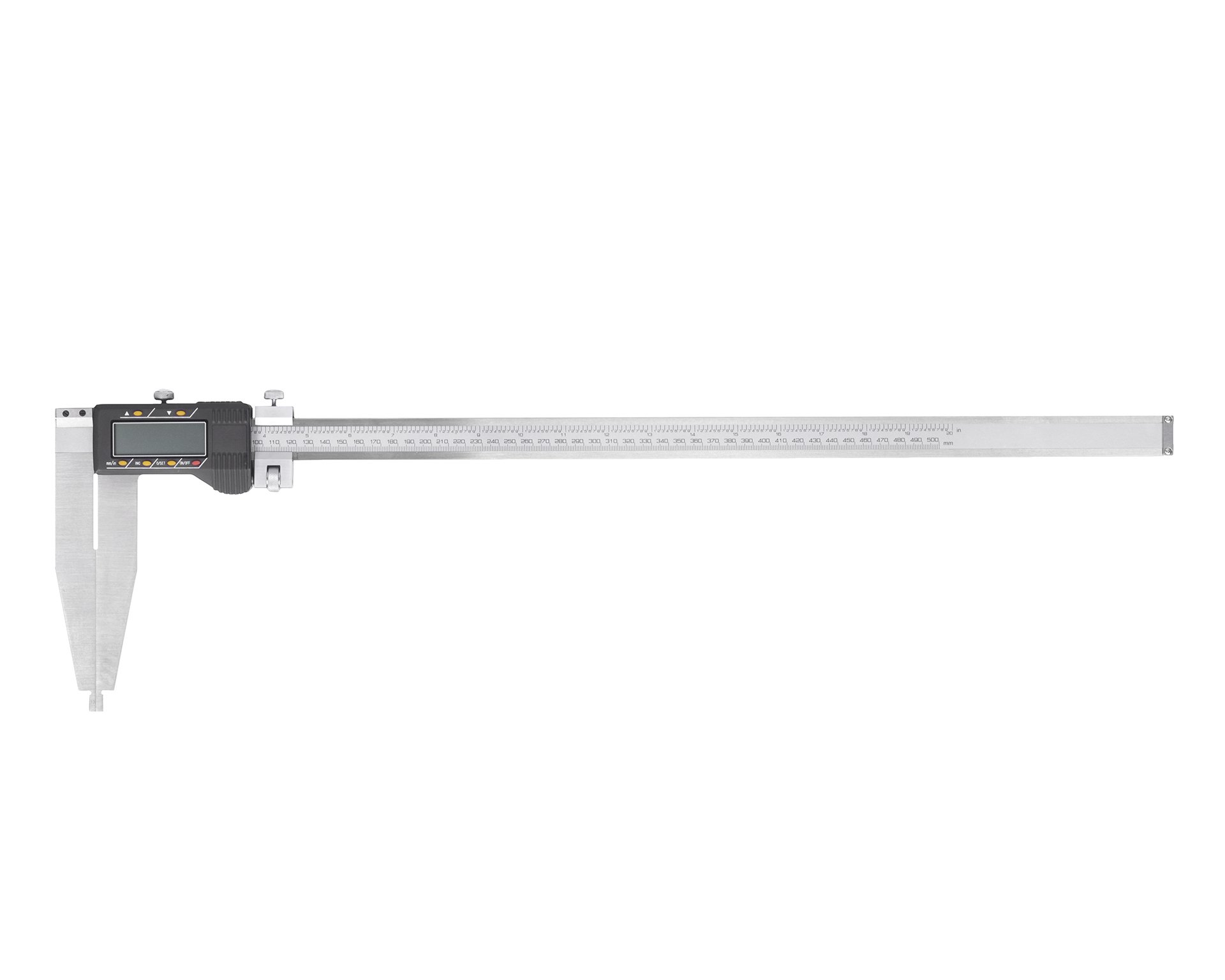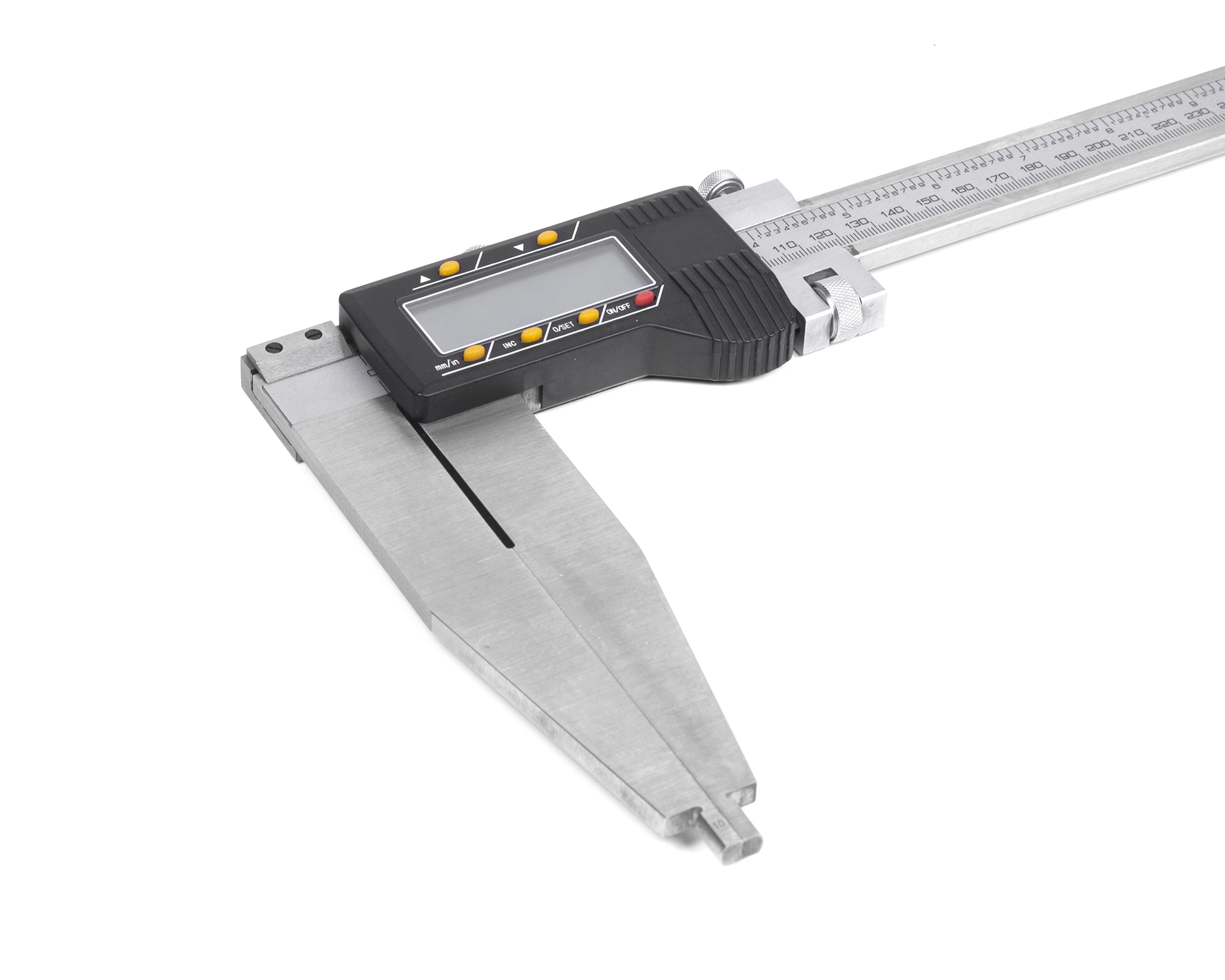 Прибор имеет штангу со шкалой, но в отличие от механического типа функцию нониуса здесь выполняет цифровой блок. Удобство электронного ШЦЦ в том, что показания выводятся сразу на дисплей – нет необходимости тратить время на подсчет значений по делениям шкал. Также здесь можно быстро выставить прибор на «нуль» в любом месте шкалы, производить вычисления в миллиметрах и в дюймах.