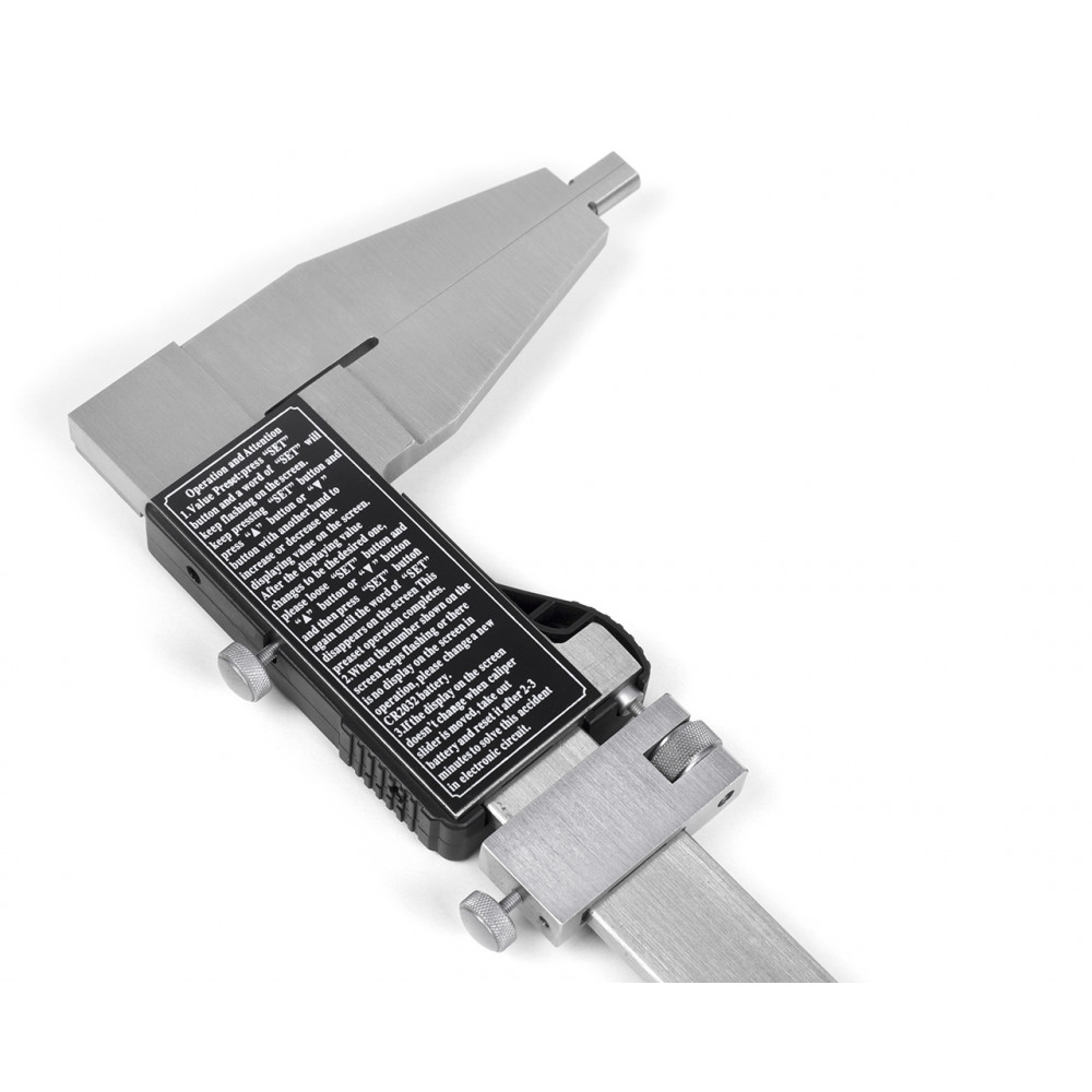 Прибор имеет штангу со шкалой, но в отличие от механического типа функцию нониуса здесь выполняет цифровой блок. Удобство электронного ШЦЦ в том, что показания выводятся сразу на дисплей – нет необходимости тратить время на подсчет значений по делениям шкал. Также здесь можно быстро выставить прибор на «нуль» в любом месте шкалы, производить вычисления в миллиметрах и в дюймах.