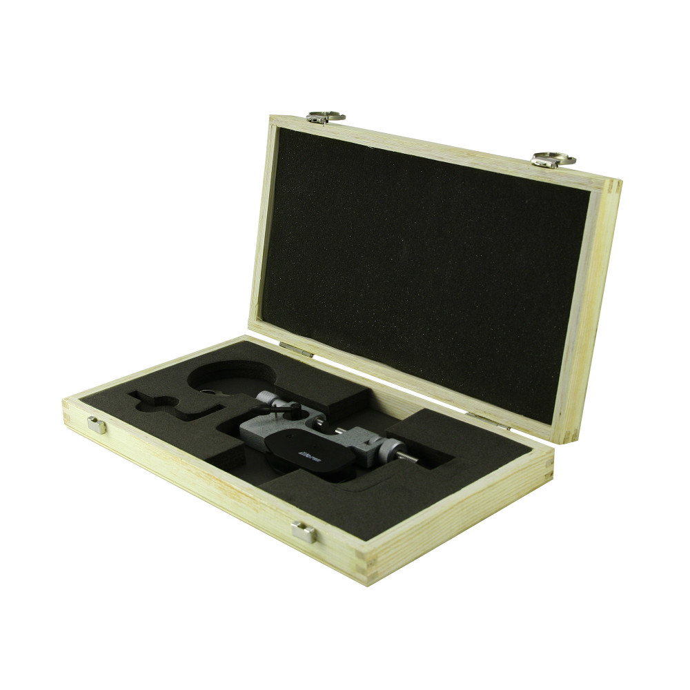 Верхний предел измерений 25 мм, цена деления 0.001 мм, производства бренда Micron.