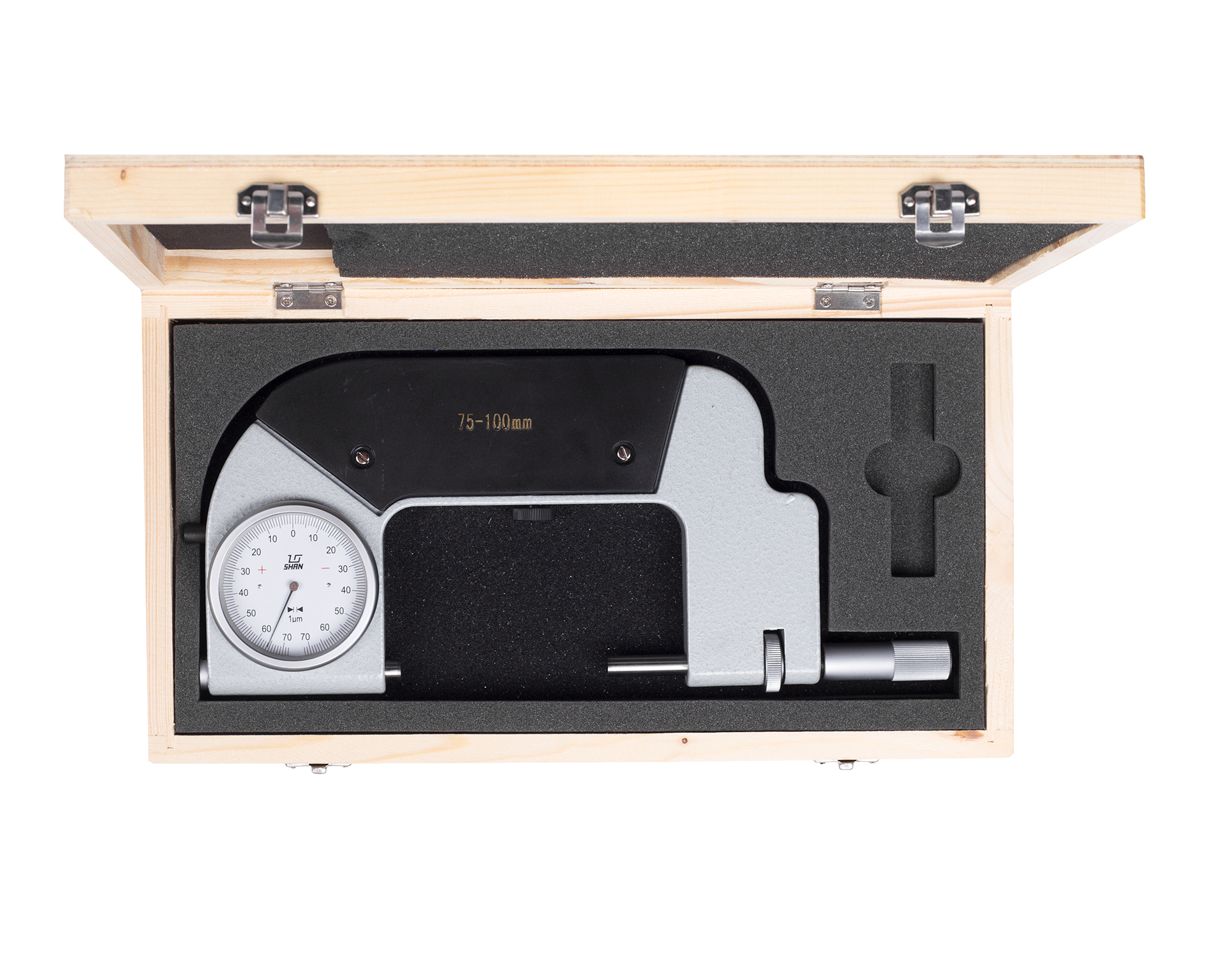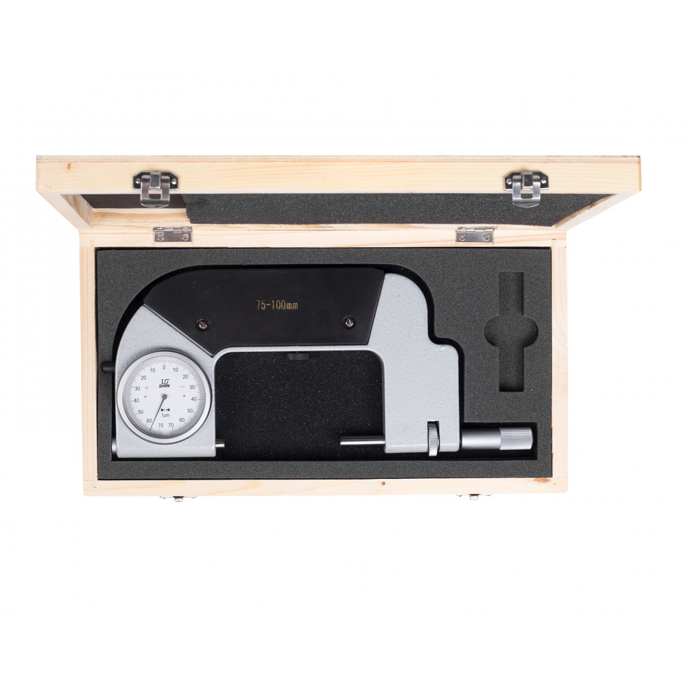Верхний предел измерений 100 мм, цена деления 0.001 мм, производства бренда SHAN.